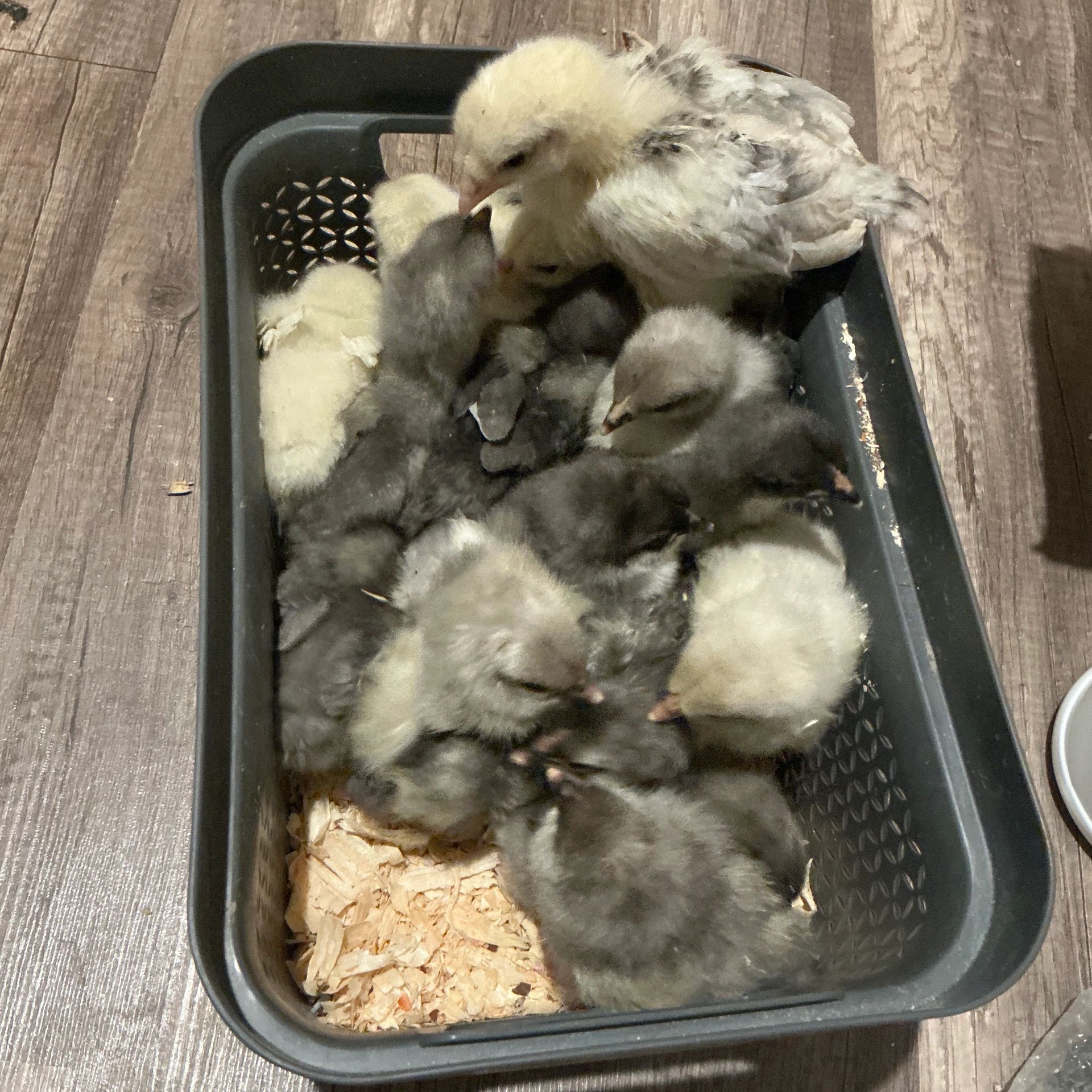 These babies are now older and still avail. I have them in the grow out pen. There are blue and splash marans and olive eggers.