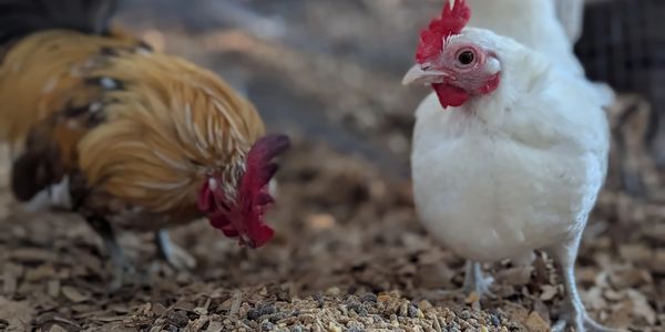 We have a pumpkin colored Roo over a white hen.